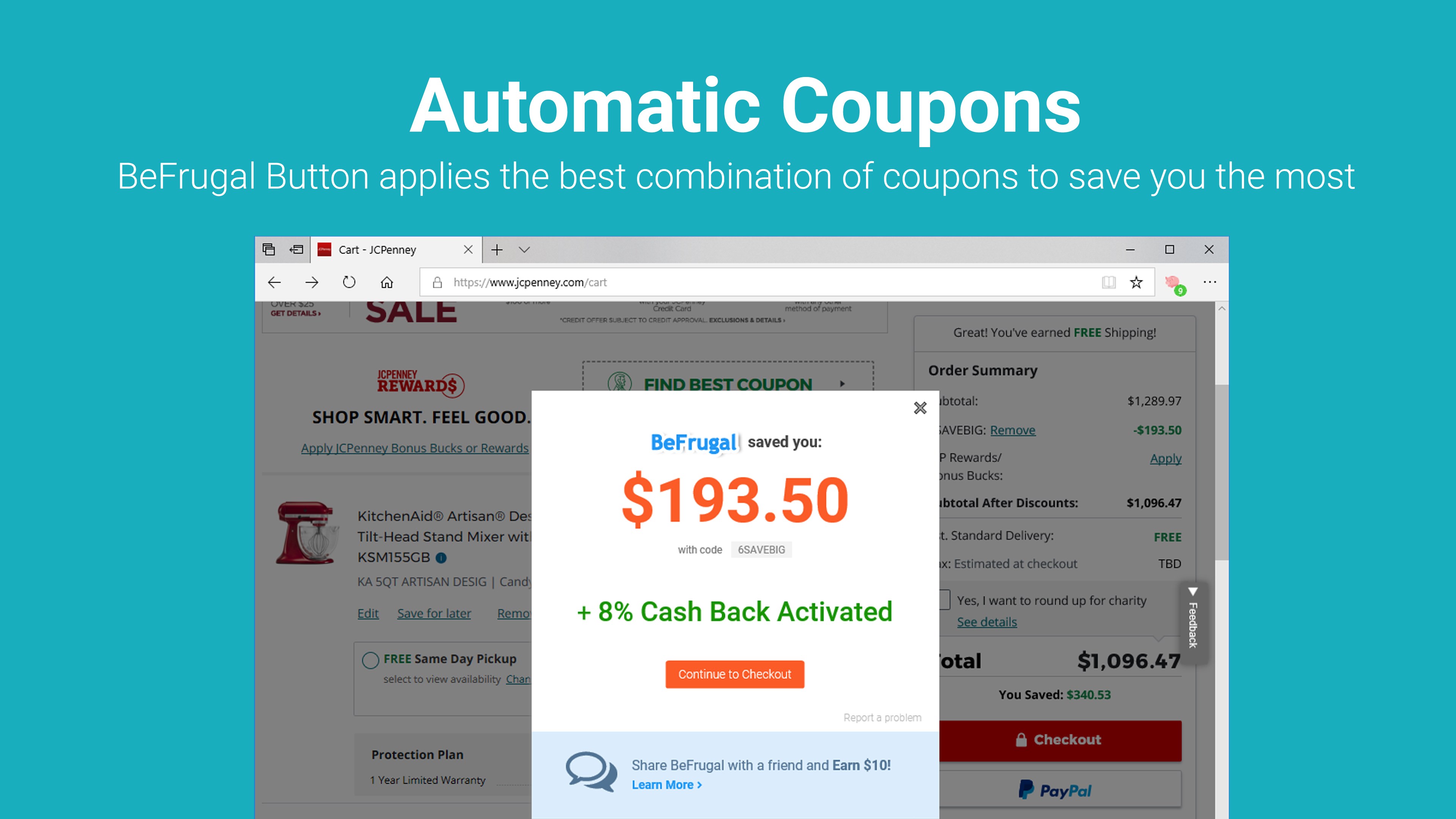 About BeFrugal: Highest CashBack, Automatic Coupons
