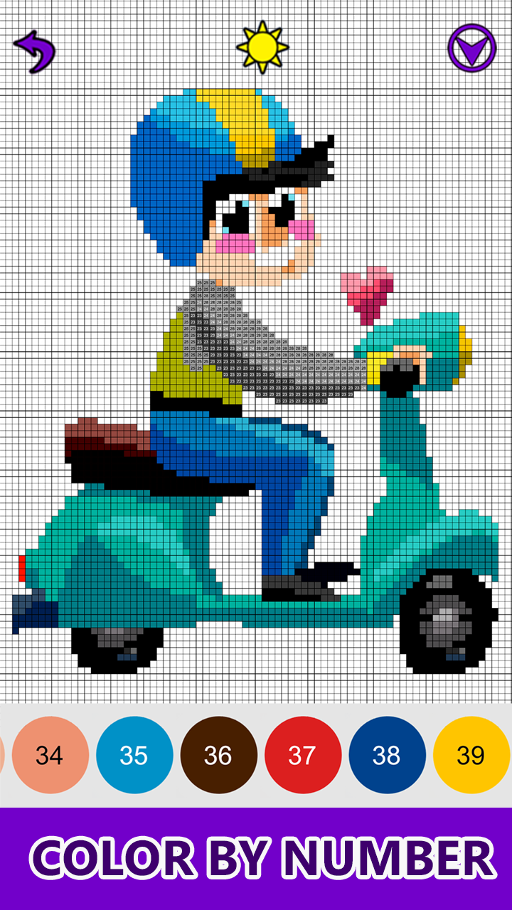 About Bikes Color by Number - Pixel Art Coloring Book