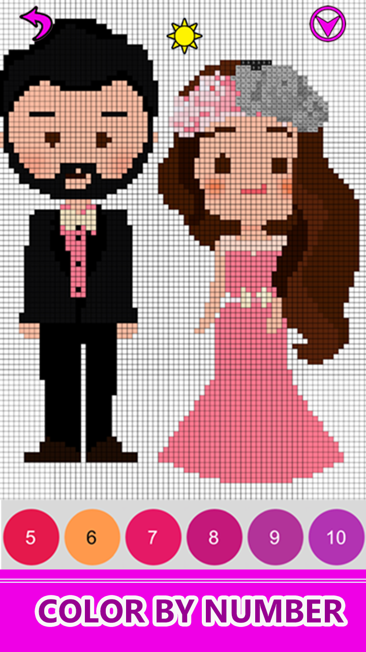 About Bride and Groom Color By Number: Pixel Art, Wedding Coloring Book