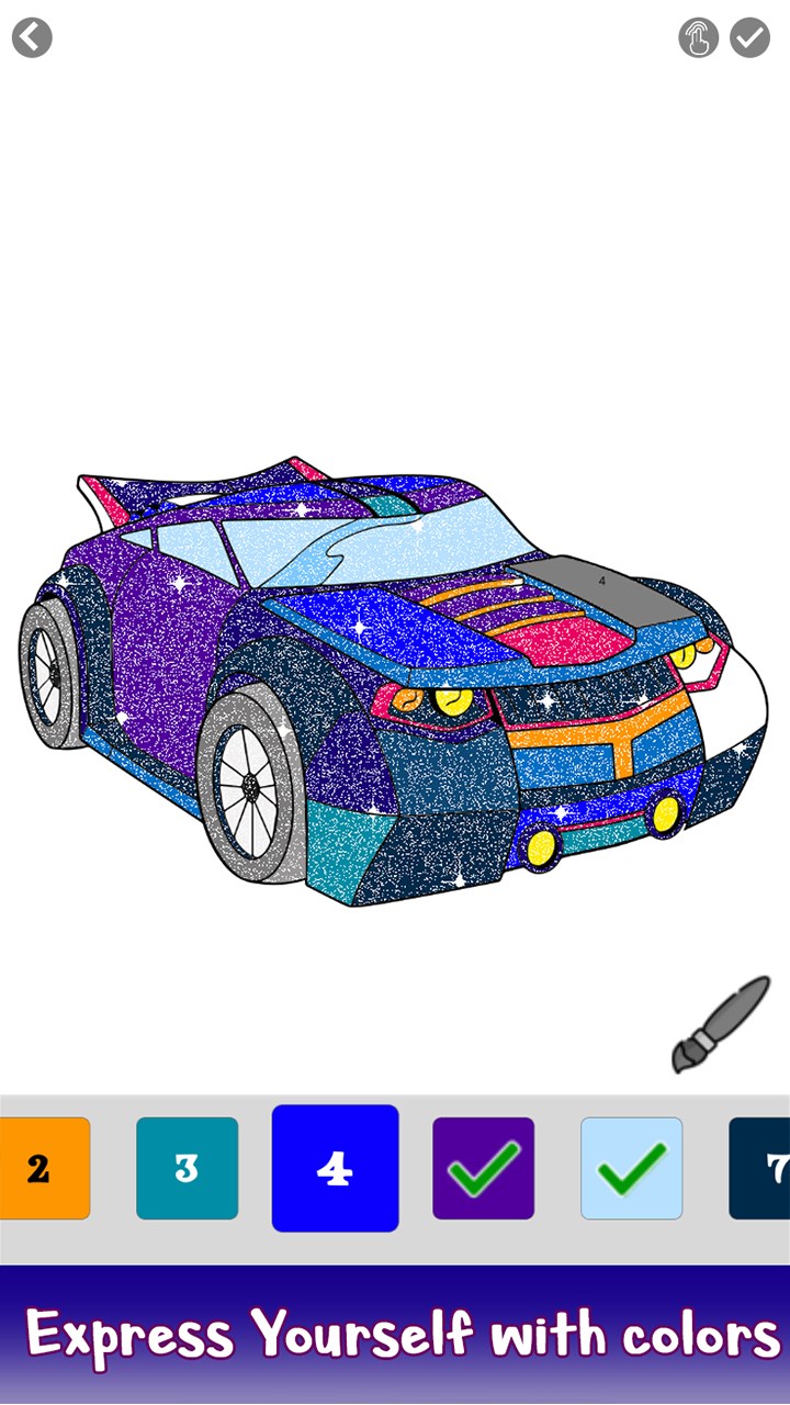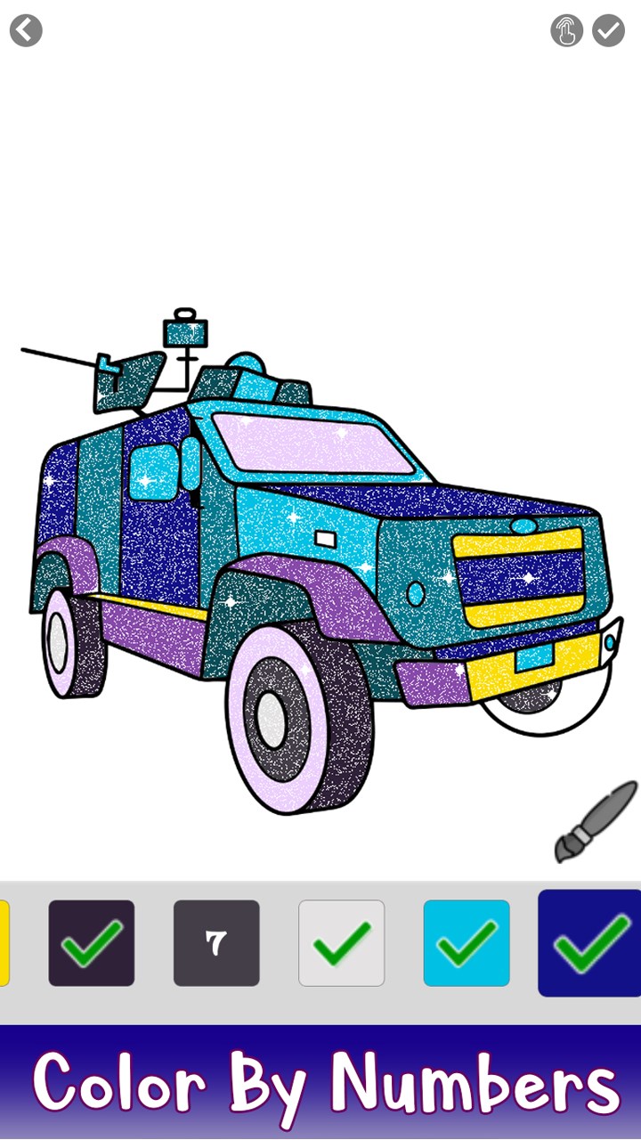 About Cars Glitter Color by Number - Vehicles Coloring Book