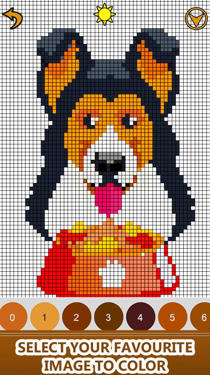 Dogs Color by Number - Pixel Art, Animals Sandbox Coloring