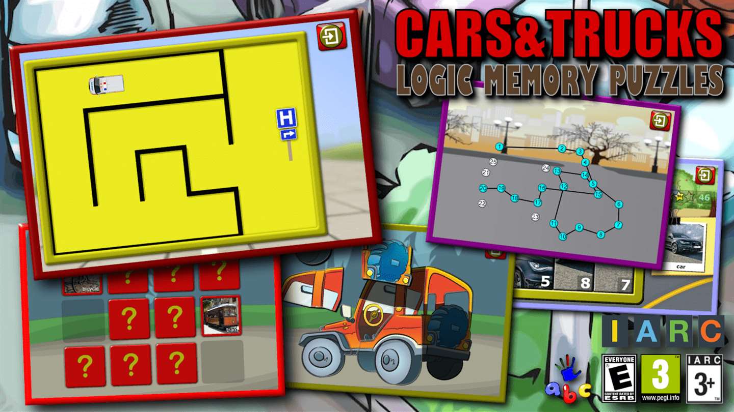About Kids Cars and Trucks Logic and Memory Puzzles - teaches children the letters of the alphabet and counting