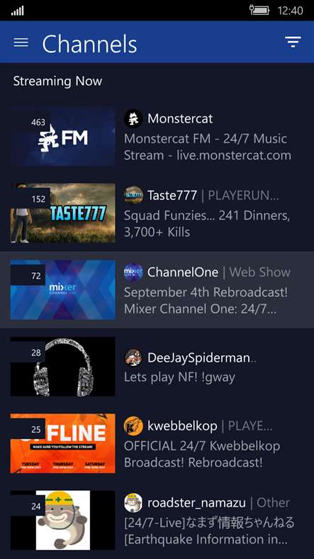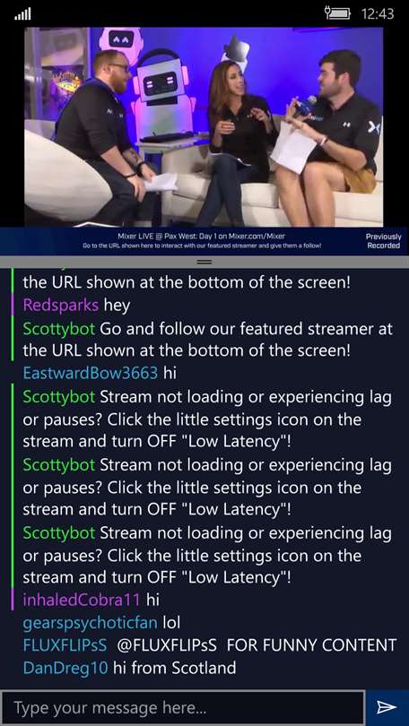 The presentation and streaming itself are great. I do have issues with not being able to chat while logged in. I'm sure that will be addressed in a future update. Glade to have a proper Mixer app for my Windows Phone!