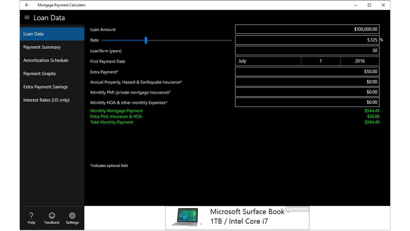 I looked at 4 or so mortgage apps. I needed one that calculated effects of extra small principal payments since we refinanced and decided to put the savings into that. Shockingly most mortgage apps don't have this feature. Kudos to this one. Needs more polish and a better app icon. Occasional hang. So 4 stars. Good job though. Would like to see ability to save various scenarios. Samsung Focus.