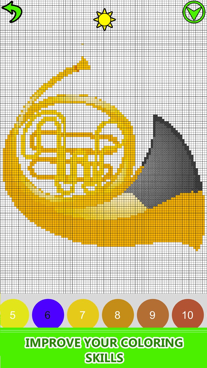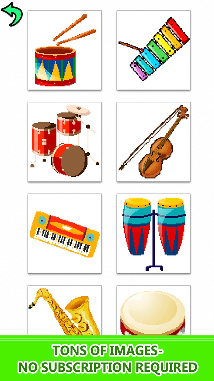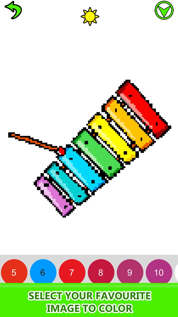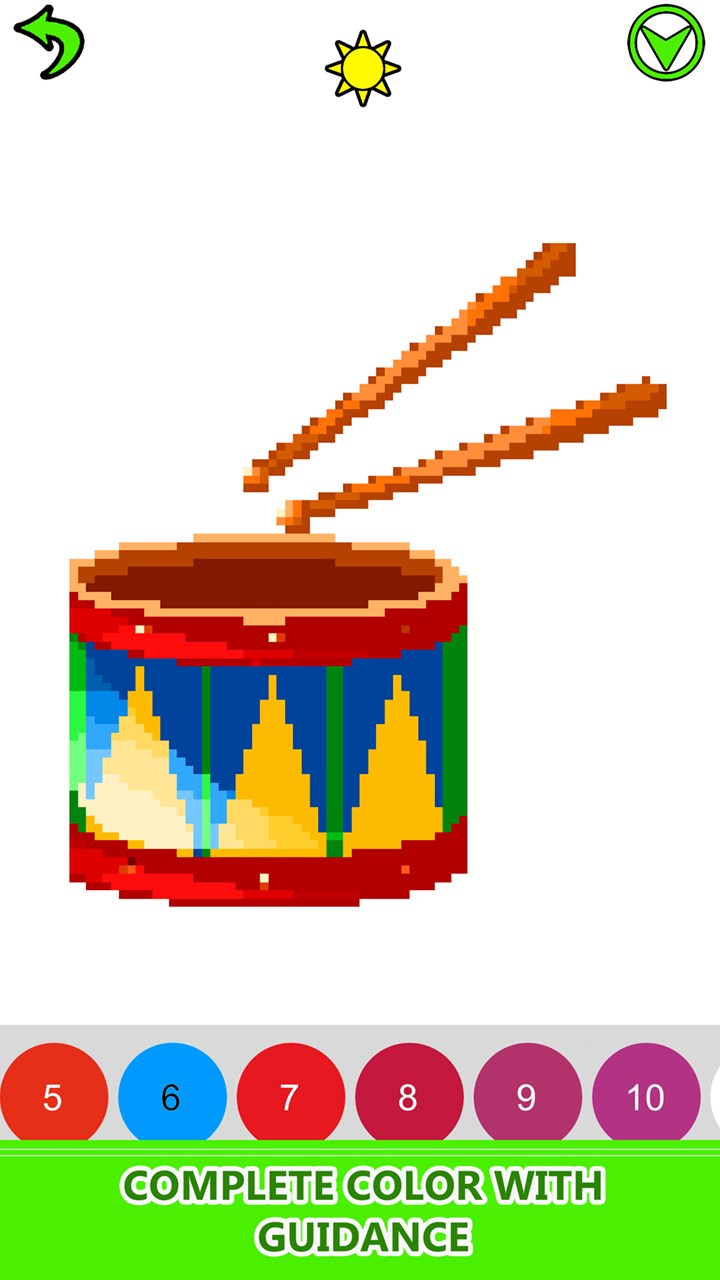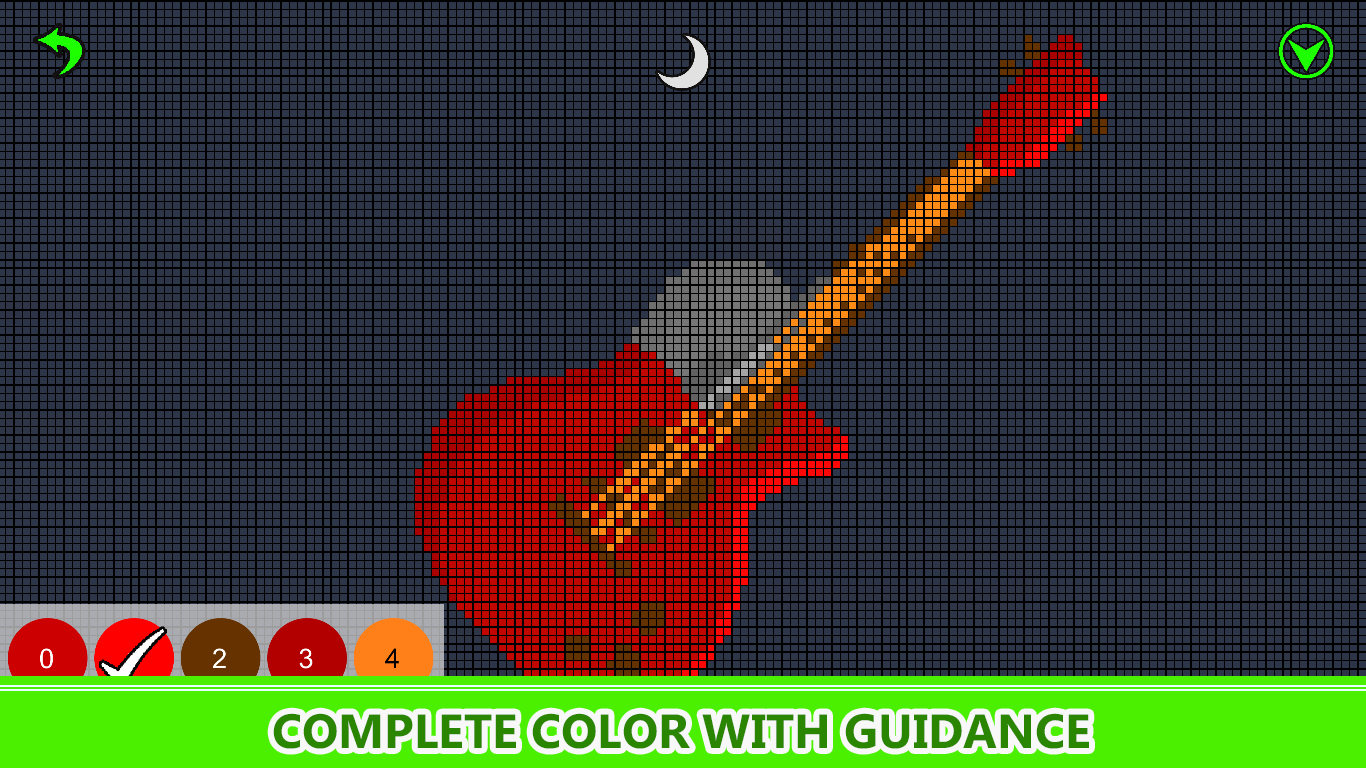 About Musical Instruments Color By Number: Pixel Art, Sandbox Coloring Book
