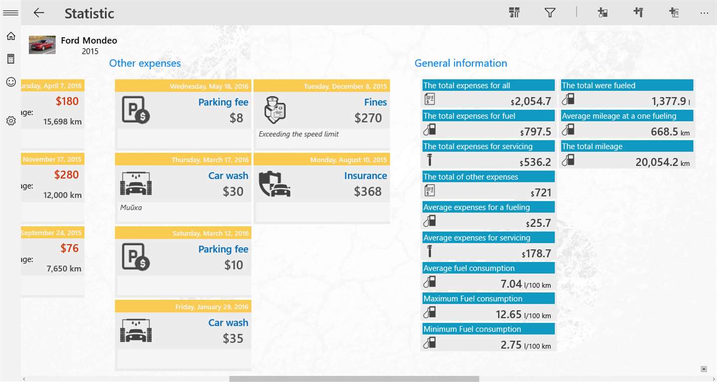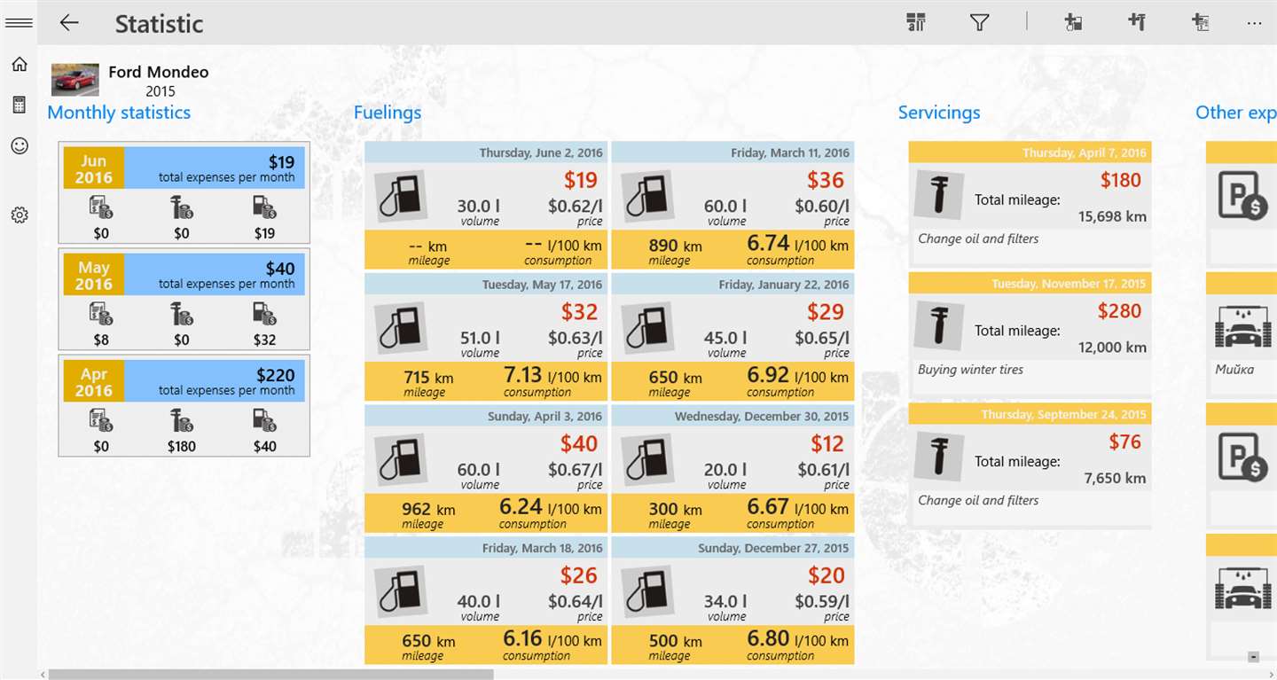 Right click and choose add at the bottom panel to add things. Sometimes "add" will open another menu to choose an item. A photo of your vehicle must be 200k or less according to the info, but I had no problems yet. Needs an import feature for those moving from apple/android systems as I am NOT going to enter 3 years of data for 3 autos. This is a good program if you are willing to manually add the entries or are just starting a log. Needs to save data to skydrive for sharing between devices.