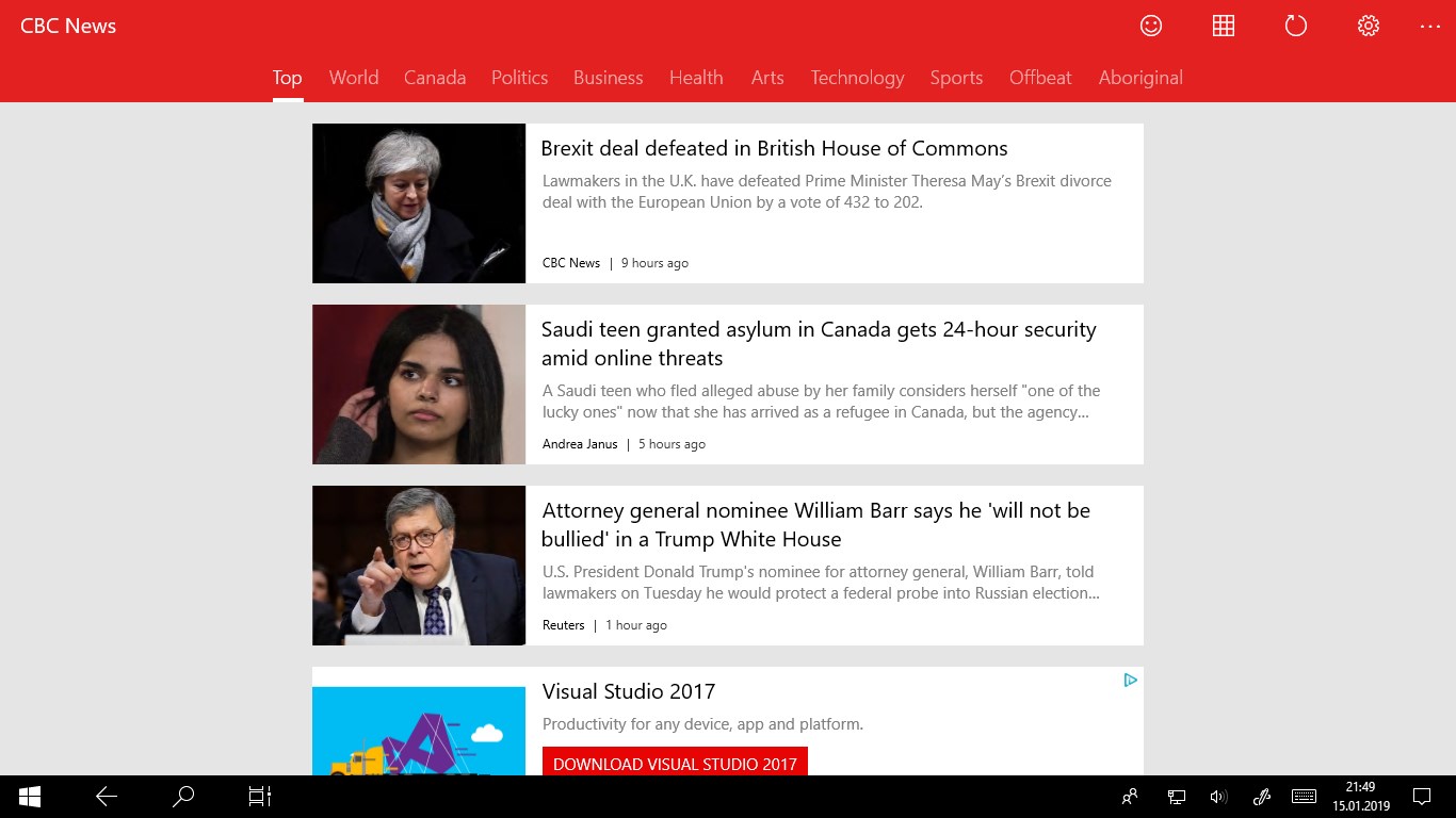About News Reader for CBC News