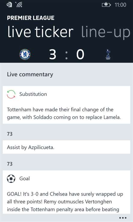 Simply put the best football app there is, great UI easy to use and best of all its universal so you get the same awesome experience on the pc tablet and phone. Hope it also comes to xbox