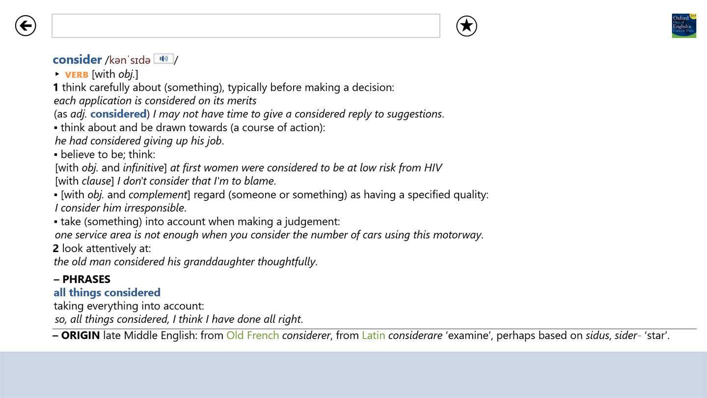 Oxfords is the best of dictionaries and thesauruses. When installed on my PC, however, it was overly complex and slow to access and use during preparation of a document. I find Encarta to be more facile in use, albeit, less complete than Oxford.