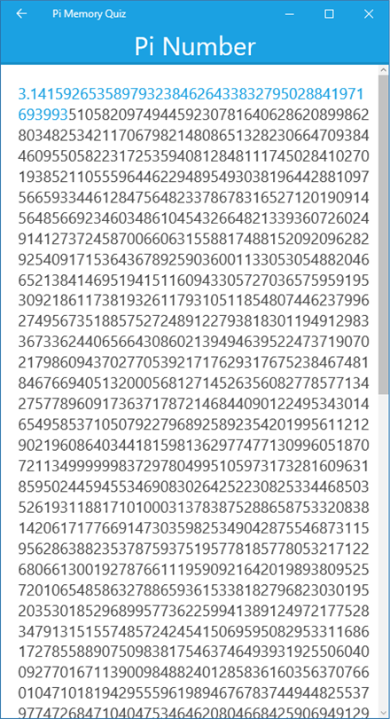 About Pi Memory Quiz