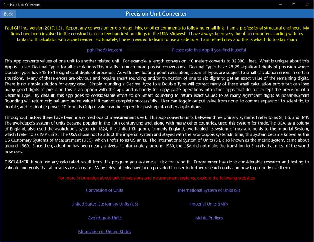 I very much like the included engineering units but I think the app needs the following features: 1) Needs the ability to set the number of digits after the decimal point. 2) Needs the ability to change the text/background colors, or the ability to change themes. 3) New icon (perhaps a material design icon?) ;)