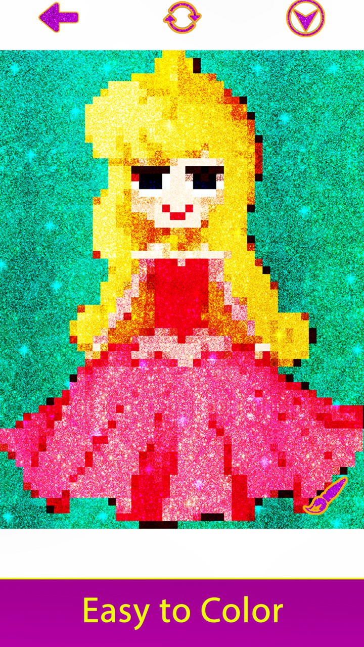 About Princess Glitter Color by Number: Pixel Art, Girls Coloring Book