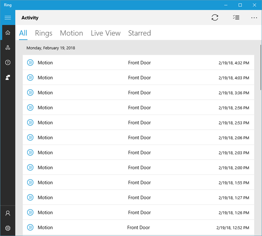 This review focusses on the app - not the doorbell hardware (see sites like Amazon for the hardware reviews). I've been using Ring Doorbell for ~6months, using the apps on, err, "other" devices. This Windows 10 app mirrors the functionality on other platforms - but where I notice the biggest difference is speed of notifications and loading of live-streams. I find that notifications and video-call/motion-sensing video streaming start a *lot* quicker in the Win 10 than other platforms. I love being able to take calls at my front door on my Windows 10 devices, anywhere in the world.