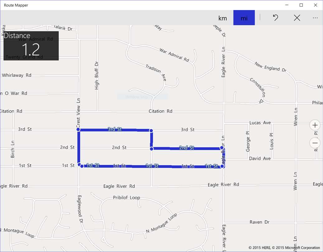 Delivers on the promise - very clear UI, functional. No need to dig through tons of UI to achieve exactly what I launched the app to do. Few small things that would make it even better: - click and drag the existing POIs to allow for easy re-routing, - click along the existing route to add POI, to allow for more flexible re-routing when dragging of POIs is implemented, - right click to delete a POI (if clicked on first/last, just remove it; otherwise try to connect adjacent POIs to fill the gap) - print/share so I can brag about the distances(maybe FB integration?) :) - display the unit along with the distance value, for clarity,