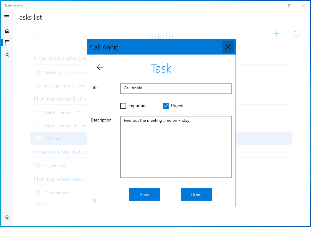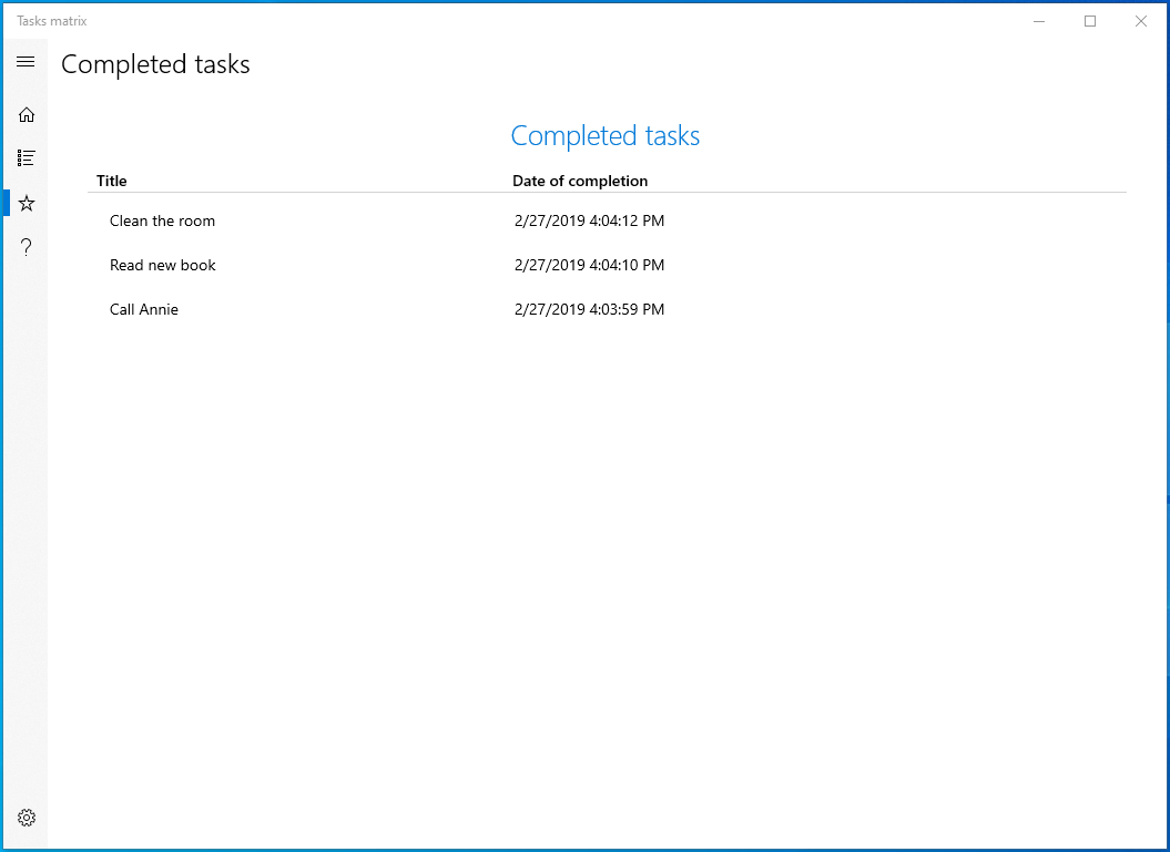 About Tasks matrix