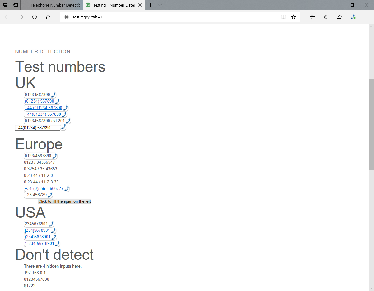 About Telephone Number Detection