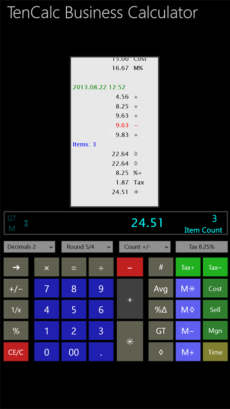 I was skeptical but quickly decided I loved the app! I'm use to the old adding machine. Which works fine, but is a pain when you run out of batteries, ink or tape! Which I did while preparing tax statements and in a pinch, I tried TenCalc! I love that you can save tapes to the computer for a digital copy. I also love that you can print several tapes on one sheet! Great for at a glance summary sheets when doing my business taxes and monthlies!