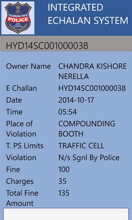 Traffic E-Challan Telangana