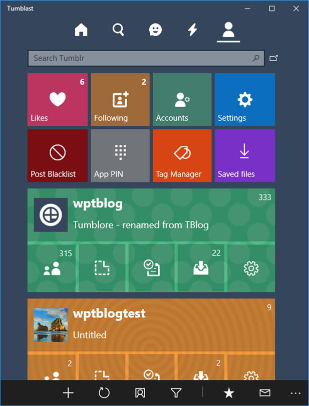Things you will love, coming from TBlog: • sooo much faster! • lots of screen real estate if your scaling is low enough, making it faster to switch between blogs on the activity screen. Things you will miss: • option to disable automatic gif playback on posts. • years of your saved tag combinations do not carry over. a tag importer would be pure gold. • this app zips back up to the top of a blog after you reblog or draft or anything (the desktop version does not do this so i was surprised. Things that may bother you: • this app doesn't fully support high-contrast accessibility either. • does not handle resuming well and will be stuck trying to reload whatever you were on; Back button quits the app unfortunately, and the Refresh button does nothing. • trying to queue a post still doesn't work; it posts immediately.