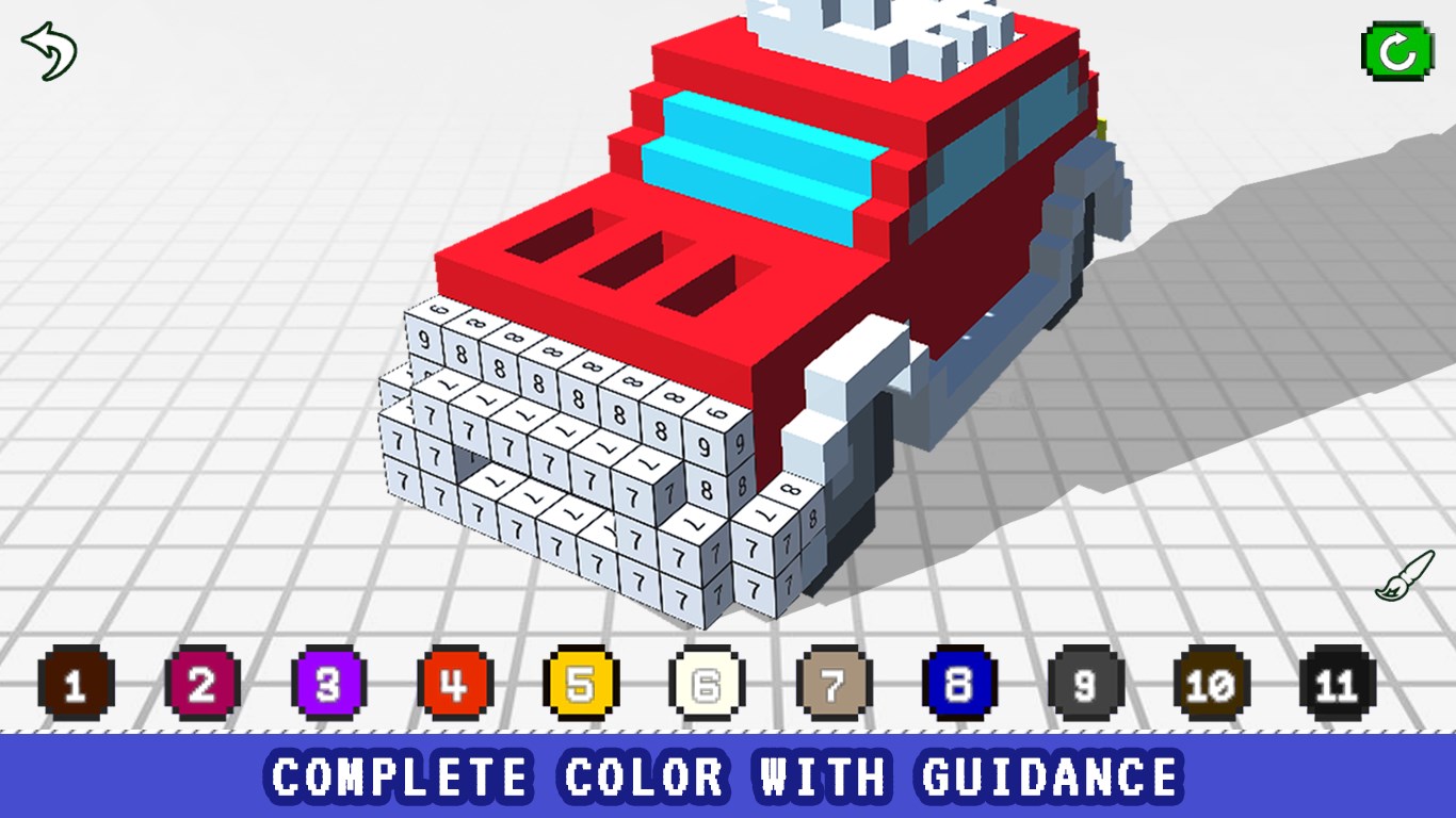 About Vehicles 3D Color by Number - Voxel Coloring Book