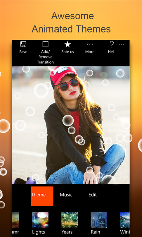 I like the editing of the videos and the effects makes it all really easy! But if you can I haven't figured it out but id like to choose the transitions. I just downgraded a star noticing that you cant keep the sound of the video that it already comes with...