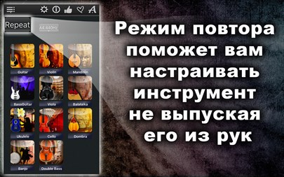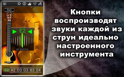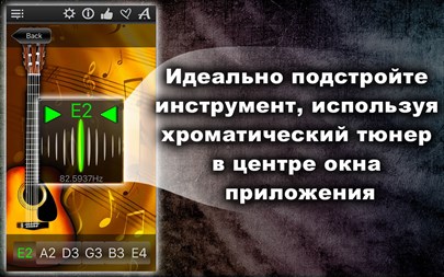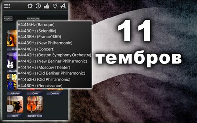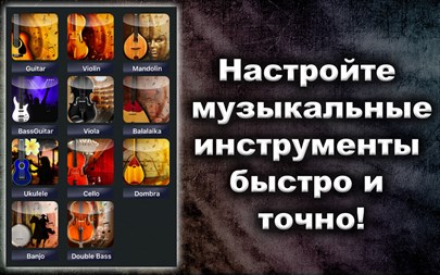БЕСПЛАТНО пробуйте 1 день! Настройте любой струнный инструмент (из 11) быстро и точно! Простой и мощный тюнер поможет Вам в этом! Вы можете не только прослушивать звук каждой настраиваемой струны, но также проверить правильность настройки и "отшлифовать" её с помощью хроматического тюнера, который расположен в середине окна приложения! Апп-функции: * Хроматический тюнер с аудио-входом и поддержкой микрофона, * Генератор тона с оригинальным звучанием музыкального инструмента, * Автоматическое повторение проигрываемых звуков, * 11 тембров: + Барокко, + Научный, + Франция 1859, + Новый филармонический, + Концертный, + Бостонский симфонический, + Новый Берлинский, + Московский театральный, + Старый Берлинский филармонический, + Старый филармонический, + Ренессанс