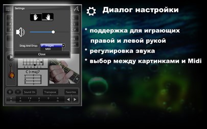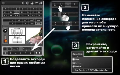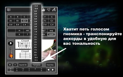 БЕСПЛАТНО пробуйте 1 день! С помощью "120MandolinChords" Вы сможете сразу и без опыта играть аккорды на мандолине! Это приложение содержит более 120 аккордов. Это все аккорды, которые нужно знать для того чтобы сопровождать любые песни! Программа имеет ясный, простой и интуитивный в использовании интерфейс. Вы можете: - Посмотреть аккорды в стандартном представлении, в TAB-представлении и в виде фотографий, - Прослушать звучание выбранных Вами аккордов, - Перетащить их изображение в редактируемые Вами документы, - Создать последовательности аккордов для ваших любимых песен, а так же записать, удалить и загрузить их, - Избежать пения голосом гномика, проведя транспонирование аккордов в удобную для Вас тональность