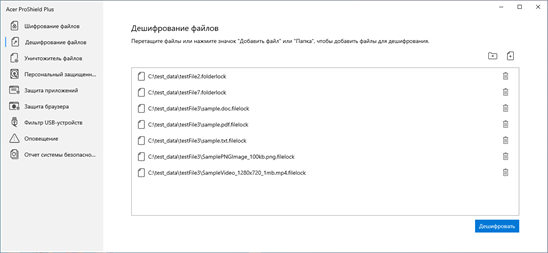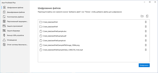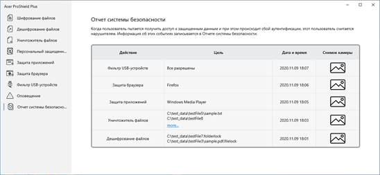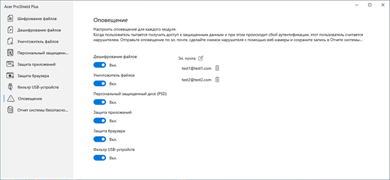 Входящие в состав Acer ProShield Plus модули будут защищать ваше устройство от несанкционированного доступа и проникновения злоумышленников. ● Шифрование файлов ● Уничтожитель файлов ● Персональный защищенный диск (PSD) ● Защита приложений ● Browser Guard ● USB Device Filter