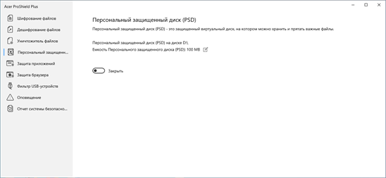 Персональный защищенный диск Персональный защищенный диск (PSD) - это защищенный раздел жесткого диска, в котором можно хранить и прятать важные файлы.