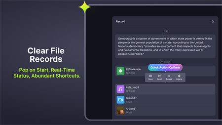 -Instant Transfers: Drag and drop or select files for immediate and hassle-free sending.