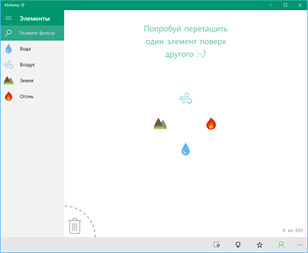 Станьте алхимиком! Для начала у вас есть всего четыре основных элемента: вода, огонь, воздух и земля. Что вы можете создать и открыть с ними? Игра содержит более 830 различных элементов - разблокируйте их все и выиграйте все доступные награды! Вы можете синхронизировать свой прогресс с помощью Facebook, Twitter или Google и играть на всех ваших устройствах. Если вы застряли, используйте подсказки, чтобы открывать новые элементы!