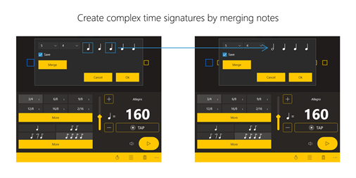 Features: - tempo from 5 to 400 BPM - visual feedback for played tempo - tap tempo button - click any visual feedback square to change sound between normal, subaccent, accent and muted - set different time signatures - create custom time signatures - you can merge notes to create even more complex time signatures - set different subdivisions - create custom subdivisions - save presets - setlist: - add many presets to setlist - set for how long to play single preset (infinity or define number or measures (bars)/minutes) - set countdown before each preset - use gig mode to avoid distractions during shows - practice with different modes: - increase/decrease tempo - change tempo every few measures (bars) by defined number - timer - play for defined number or measures (bars)/minutes - warmup - play given tempo for defined number of measures (bars), then next tempo, then next and so on - automatically mute metronome for x measures every y measures for better practice (you can also hide visual feedback) - set countdown before practice starts - dark and light themes - many different sounds