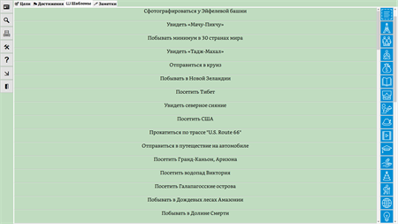 «Arumen» - это менеджер целей, которая позволит устанавливать определённые цели из множества шаблонов и следить за их выполнением. При этом она включает в себя ещё и диспетчер задач (список дел) и журнал событий (заметки).