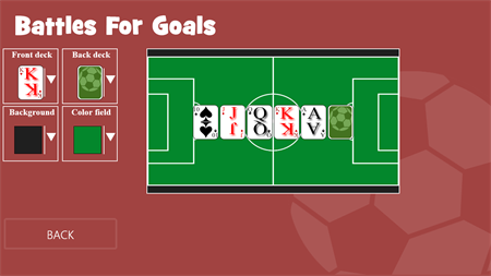 Rules of the game: The deck of 36 cards distributed evenly over the 18 cards between two players creating their own deck of cards. After receiving cards players must place them in positions. The following positions: goalkeeper, three defender and a striker. For location card on positions taken top card of their own stocks. After placement of cards, the player who goes first, goes until his cards will beat the opponent cards.To do this, set the top card of his own deck and placed on card of the opponent. There is some sequence during the game. First you need to beat the opponent striker card. After that, it will be available to defenders and only after them - goalkeeper. Card deemed bat if its value is less than the second card. High card is the "Ace" lesser "6", but "Ace" beats "6" and "6" hits "Ace". Colour cards in the game does not count. When the attacker manages to beat all the cards opponent, he counted goal. If the cards are equal when performed dispute between two players. To do this, put the top two cards of identical cards, one card is closed, the other open. Open map determines who wins the dispute. If open cards as equal, open closed cards, which ultimately determine the winner of the dispute. If the closed cards equal, preference in favor of defending. Winner takes all the cards that participated in dispute and they are placed on the bottom of the deck after an attack attacker. If the attacker wins the dispute, it continues its course, otherwise course moves to the next player.