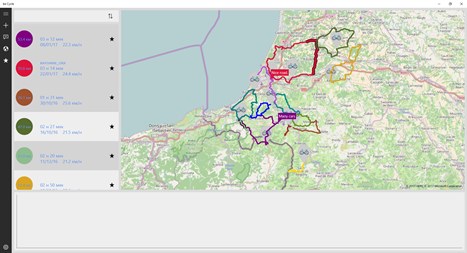 be Cycle is an app to analyze your bike ride in a simple and intuitive way. Display your GPX, KML or KMZ (and georeferenced pictures) tracks on the map. Trace modeling graph for a simplified analysis of the ride. The selection on the graph can be found on the map to locate the difficulties. Edit tracks to add a relative note, weather, road condition.