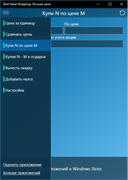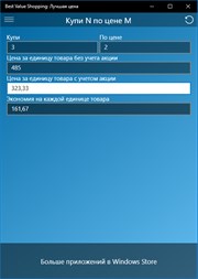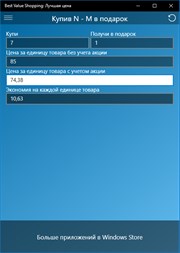 Делая покупки, сравнивайте товары на основе цены за килограмм (а также грамм, литр, штуку и др.). Оценивайте экономию при покупке по акции "3 по цене 2", "купи 7 - получи 1 в подарок" и подобных. Все расчеты приложение сделает за вас.