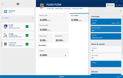 Bronkhorst FlowSuite™ is the software application for monitoring and configuration of Bronkhorst digital instruments. The powerful graph and measurement functions gives insights into the dynamic behavior of the instruments. The easy to use settings allow you to optimize performance and to adjust the settings of functions such as the alarm, counter, communication, and fluids. For full list of supported instruments is available on the Bronkhorst website.