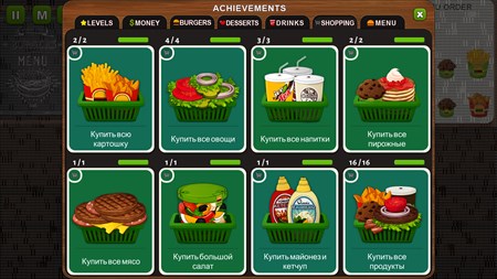 Наконец то свершилось! Вы открыли свое первое кафе под названием "Бургер Мастер" и теперь вам нужно готовить разнообразные бургеры, картошку фри, сосиски, пирожные и вкусные десерты...