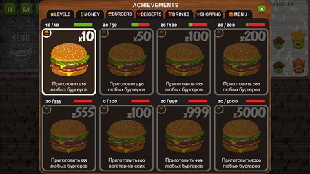 Каждый день ваше кафе посещают сотни клиентов, но их не так-то легко удержать, главное вовремя их обслужить! А так же нужно постоянно улучшать меню вашего фаст-фуд кафе. Для этого нужно зарабатывать деньги, и покупать новые ингредиенты, что бы разнообразить ваше меню, сделать его более интересным и привлекательным. И ваше кафе "Бургер Мастер" станет более популярным среди посетителей.