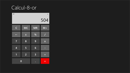 This is a very simple calculator app. Works great in snap mode as a companion app, and in portrait mode.