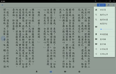 可搜尋、存取由CBETA提供的許多知名佛經,如金剛經、楞嚴經、藥師經、阿彌陀經。