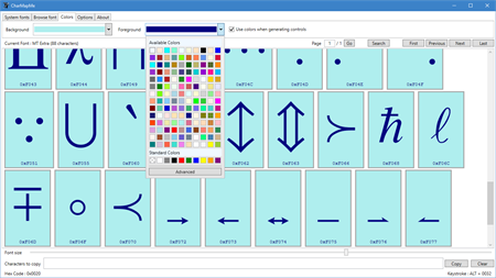 If you are a developer, you will love CharMapMe. You can easily generate XAML, HTML and Ammy code to insert special chars through Label, TextBlock and TextBox. CharMapMe uses custom background and foreground colors to draw characters better on your screen. The user experience of CharMapMe is fully customizable: chars-per-page, colors, fontsizes. In the latest version, CharMapMe supports preferred chars, chartags and includes a powerful search engine.