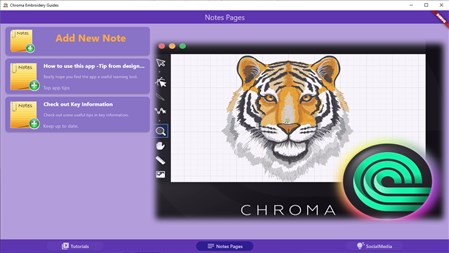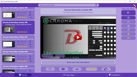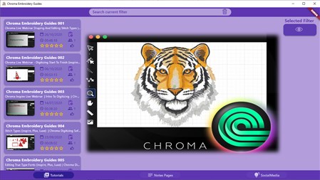 Welcome to Chroma Embroidery Software Guides an app with 136 Video Tutorials, Guides and Demos and much more. Ensure that you have the freely available VCRUNTIME software installed to ensure smooth running of the app.