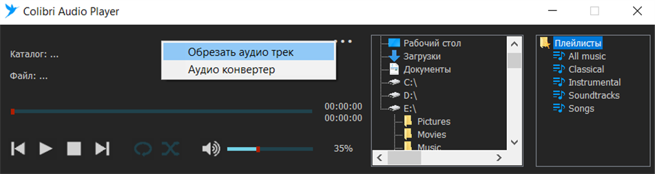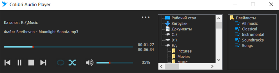 Colibri Audio Player — аудио- и музыкальный плеер для Windows 10 с приятным внешним видом, интуитивно понятным интерфейсом и мощной функциональностью.