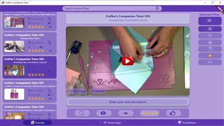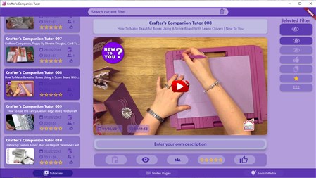Welcome to Crafter's Companion Tutor, an app with 189 Video Tutorials, Guides and Demos and much more. Ensure that you have the freely available VCRUNTIME software installed to ensure smooth running of the app. The app has many exciting features to help you learn your new skills as easily and as quickly as possible! Each tutorial is user interactive and you can add your own meaningful user description - this automatically becomes searchable - so finding specific tutorials you wish to revisit is as easy and as quick as possible. You can also add a rating and make any video one of your favourites. One really useful feature is the Clipboard filter that can be added to selected tutorials so that they immediately show up when the Work in progress filter is selected. The app has a self contained notes module where you can maintain your own set of user notes and even set up links to web pages. There is also a self contained Social Media module which allows you to set up various one touch links to your favourite social media sites, or forums, or user groups. All available without leaving the app. Crafter's Companion is a versatile crafting tool that offers a wide array of creative possibilities. With Crafter's Companion, you can embark on various crafting projects such as card making, scrapbooking, sewing, quilting, and more. It provides a platform for unleashing your imagination, allowing you to experiment with different materials, techniques, and designs to bring your artistic visions to life. Whether you're a seasoned crafter or just starting out, Crafter's Companion offers tools, accessories, and inspiration to help you create beautiful and personalized creations for yourself, your home, or as gifts for others. From intricate paper crafts to intricate fabric designs, Crafter's Companion is your partner in crafting adventures.