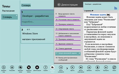 Приложение предназначено для запоминания произвольной информации с использованием слуховой и зрительной памяти. Элемент информации служит для формирования сообщений в фоновом режиме с заданной периодичностью и (или) строго по времени.