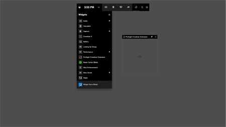 Enable the Crosshair X Extension widget in the Xbox Game Bar. Access the extension in the Xbox Game Bar by pressing Windows Key + G and activating the extension in the Widget Menu.