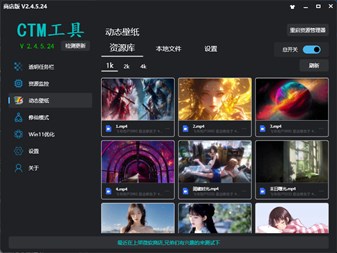 1.透明任务栏(修改任务栏透明,毛玻璃) 2.资源监控(可视化监视电脑硬件的温度,占用,CPU风扇,GPU风扇,电池等) 3.动态壁纸(把视频,网页,设置为电脑壁纸) 4.Win11优化(关闭windows更新,安全中心,VBS,新版菜单等) 另外还有 双击隐藏桌面图标 同步声卡多通道输出音量 --声卡有多通道时,比如 --1.2通道为电脑默认声音,3.4通道为播放器声音,调节电脑音量时默认为1.2 --开启功能后 --调节电脑音量时会同步调整其他通道的音量