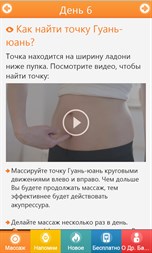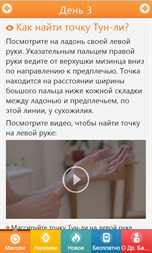 √ Вам больше не понадобятся требующие много времени визиты к врачу. √ Не понадобятся ощутимые денежные затраты. √ Отпадёт опасность внесения инфекции, повреждений тела или болей. √ Вы мягко массируете точки пальцем руки. √ Приложение автоматически напомнит Вам о нужном моменте массажа.
