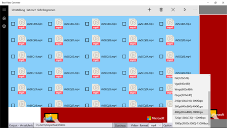 Конвертер формата пакетного видео. Различные преобразования видеоформатов. Поддержка преобразования MP4, WMV, AVI. Различные преобразования разрешения: HD1080p, HD720p, 480p, 360p, 240p, Ntsc, Pal, Vga, Wvga, Qvga conversion, вы также можете настроить разрешение преобразования. Полный формат пользовательских преобразований: вы можете полностью настроить целевой размер видео, битрейт, частоту кадров и другие параметры. Используйте это программное обеспечение, вы можете сжать видео, видеофайл, чтобы уменьшить удобство интернет-передачи. Вы также можете не видео высокой четкости в формате высокой четкости (1080p).